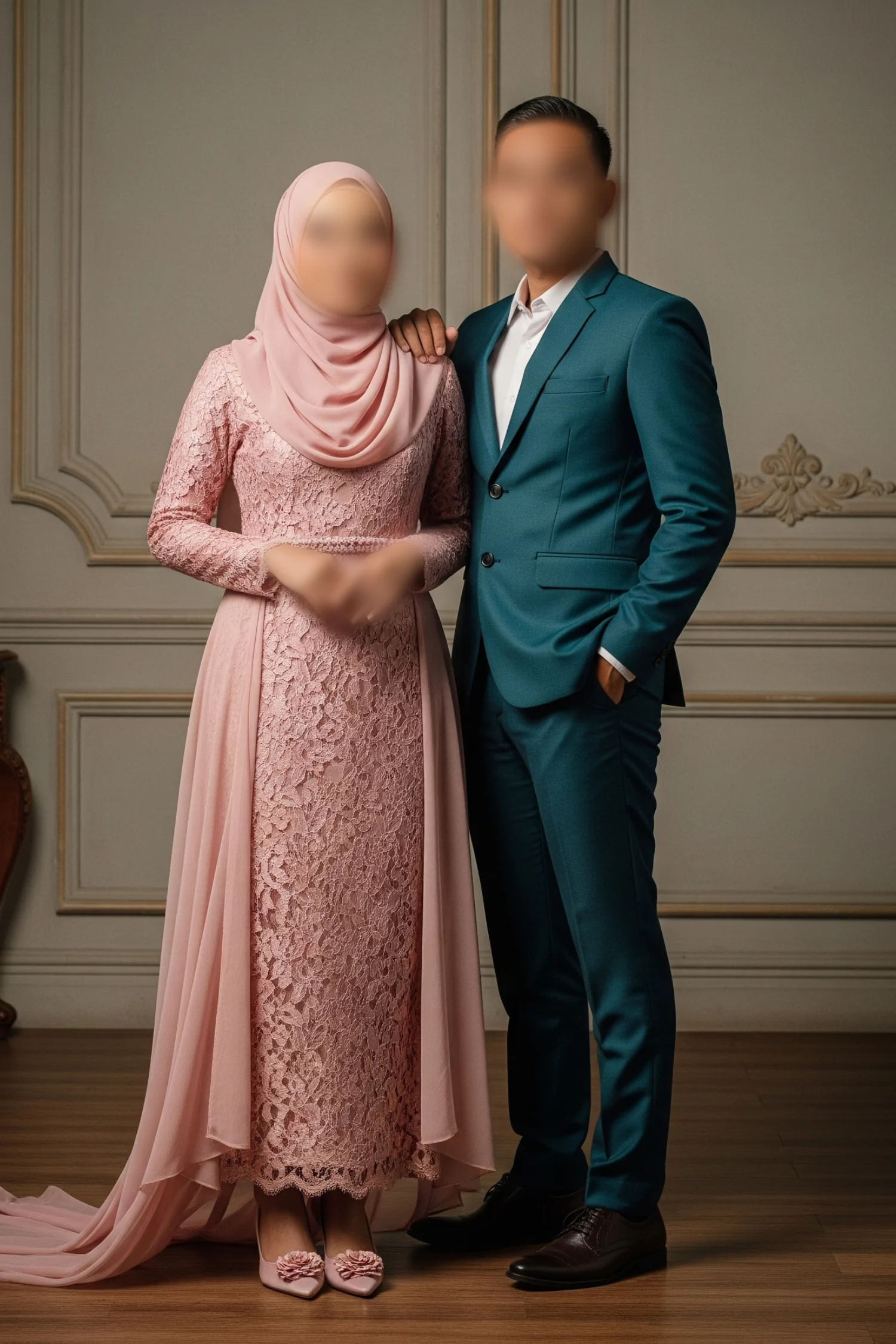 Kami dengan hormat menganjurkan tamu kami untuk mengenakan warna-warna ini untuk hari istimewa kami.